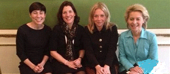 از راست به چپ:روبرتا پینوتی، وزیر دفاع ایتالیا، اورزولا فن در لاین، وزر دفاع آلمان، جنین هنیس پلاشارت، وزیر دفاع هلند و میمی کودهلی، وزیر دفاع آلبانی