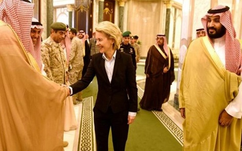 خانم «اورسلا فون درلاین»وزیر دفاع آلمان و همراهان او در سفر به عربستان سعودی از داشتن هرگونه حجاب و یا لباس بلند امتناع کردند/۲۳ آذر ۱۳۹۵
