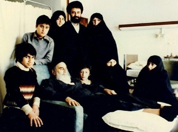 از راست:فاطمه طباطبایی، زهرا مصطفوی،خانم(همسر امام )، حاج احمدآقا، زهرا اشراقی، علی اشراقی . سیدحسن خمینی تصویر سمت چپ امام .