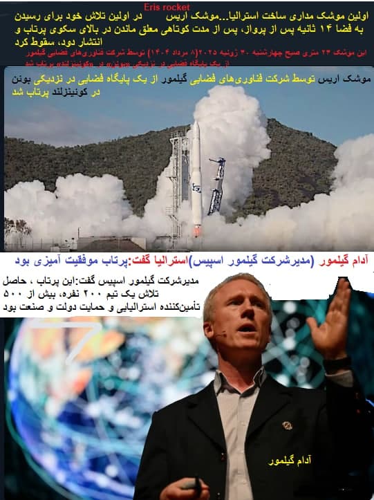 «اولین موشک مداری ساخت استرالیا»، «موشک اریس»(Eris rocket) در اولین تلاش خود برای رسیدن به فضا شکست خورد.
