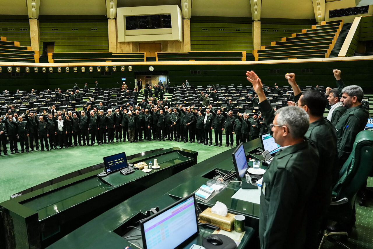 صحن علنی مجلس شورای اسلامی یکشنبه ۱۲ بهمن ۱۴۰۴ نمایندگان با «لباس سپاه»آمدند.